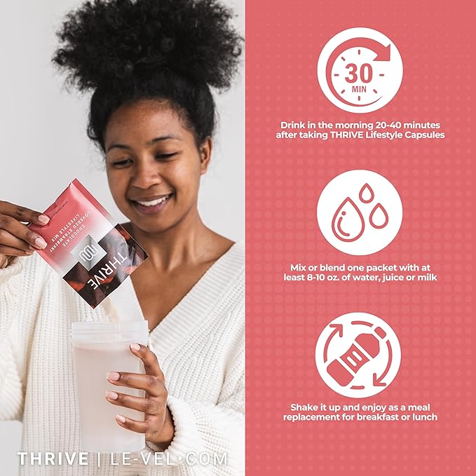 THRIVE Protein Shake | 16 Packets (35g Each) | Gluten-Free, Pea Protein Blend, Probiotics, Fiber & Digestive Enzymes | Supports Lean Muscle (16 Packets (Single Servings), Chocolate Covered Strawberry)