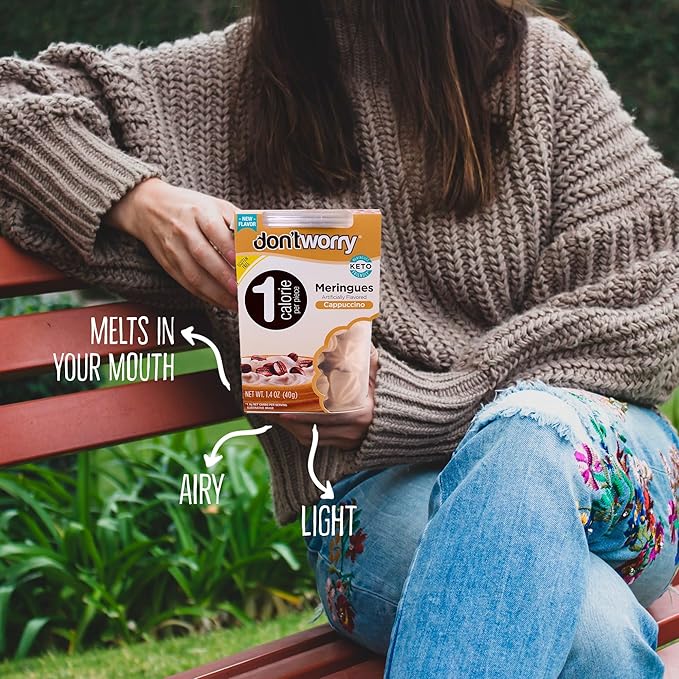 - SNAKING, BUT SMARTER: A light, airy, melt-in-your-mouth meringue cookie designed to deliver maximum indulgence with just 1 calorie per piece. Each cookie is low-sugar, gluten-free, low-carb, fat free, Kosher certified, and contains protein.