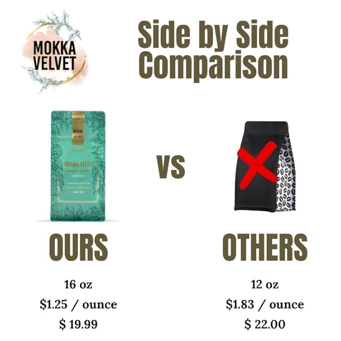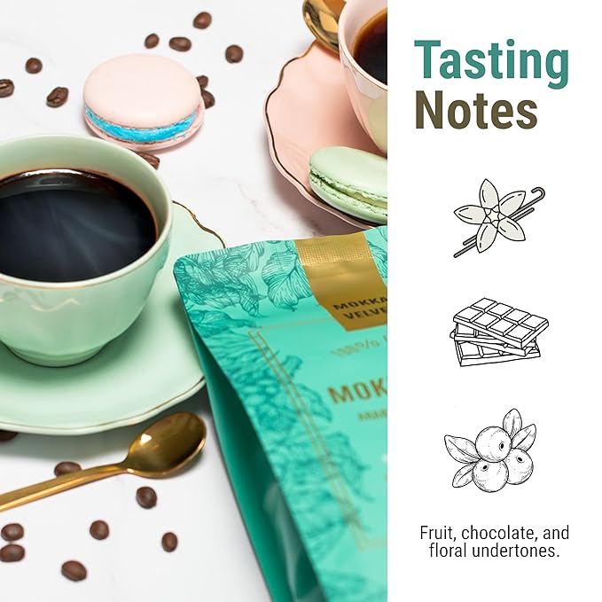 Mokka Velvet Ethiopian Coffee Ground - Organically Grown Dark Roast Coffee Ground, Single Origin, Ground Coffee, 100% Ethiopian Harar Arabica Coffee, Resealable Bag 454g.