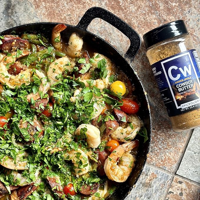Spiceology – Derek Wolf Cowboy Butter Seasoning – Bold & Buttery Blend with Garlic, Smoked Paprika & Mustard – Perfect for Beef Brisket, Pork Chops, Chicken Thighs & Steak – 10.4 oz