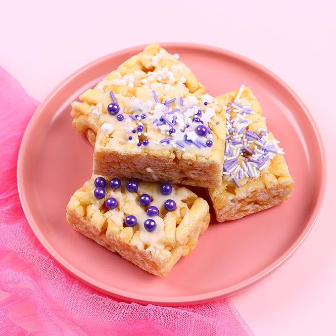 - Explore Our World of Sprinkles! - These purple and white sprinkles can add extra fun to your cakes, cupcakes or other desserts, helping them become irresistible masterpieces.