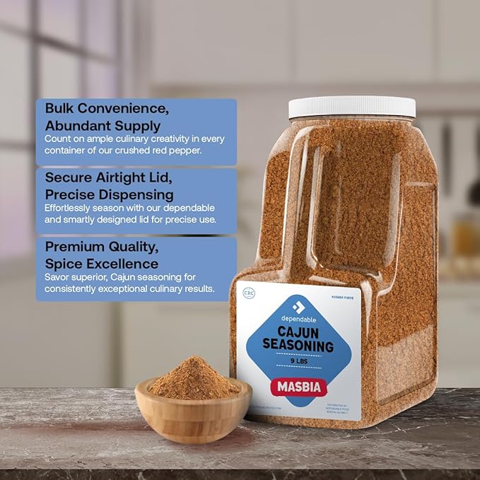 - Bulk Size for Endless Flavor: Enjoy the rich taste of Dependable Foods Cajun Seasoning in a generous 9 lb jug, perfect for restaurants, catering, or at-home cooking. Never run out of your favorite spice blend!