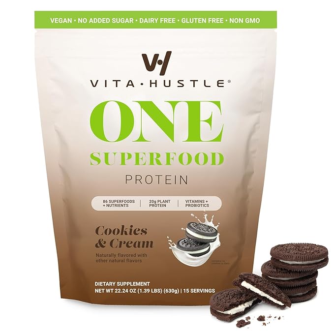 - SATISFYING & SUPER DELICIOUS – Filling without the fillers, silky-smooth and oh-so-satisfying, ONE by VitaHustle is never chalky or clumpy. Enjoy it blended over ice with water or plant-based milk, or add it to your favorite smoothie! Use it as a meal replacement, snack or after workout recovery shake.