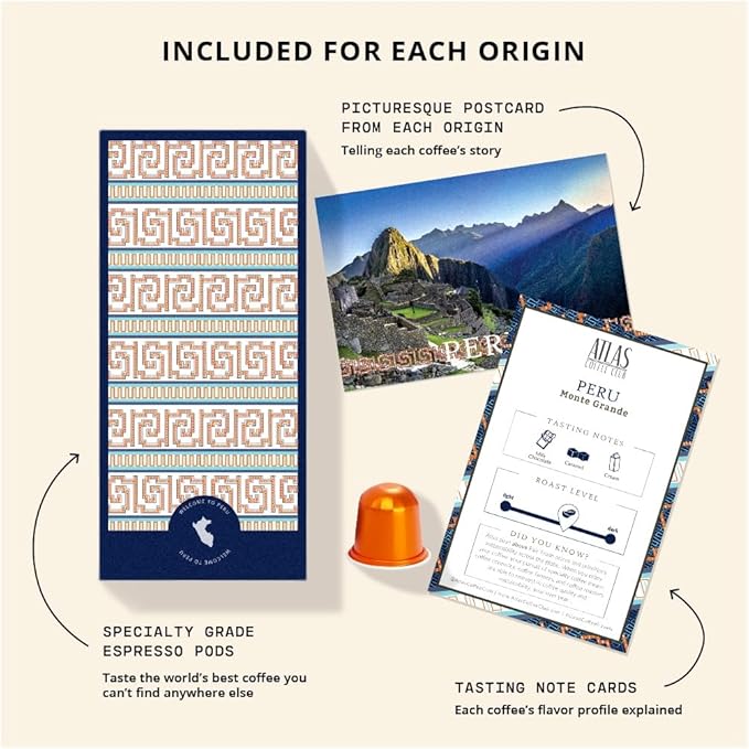 - ENJOY: 40 Atlas Coffee Club espresso capsules (4 boxes). Compatible with: Nespresso Original Machines*, Essenza Mini, Essenza Plus, Pixie, CitiZ, Lattissima, KitchenAid, and Creatista Nespresso Original machines.* Not compatible with Nespresso Vertuo machines. *Atlas Coffee Club is not affiliated with the Nespresso brand