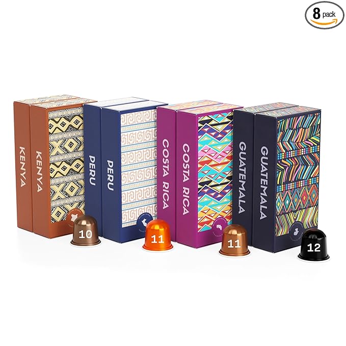 - ENJOY: 80 Atlas Coffee Club espresso capsules (8 boxes). Compatible with: Nespresso Original Machines*, Essenza Mini, Essenza Plus, Pixie, CitiZ, Lattissima, KitchenAid, and Creatista Nespresso Original machines.* Not compatible with Nespresso Vertuo machines. *Atlas Coffee Club is not affiliated with the Nespresso brand.