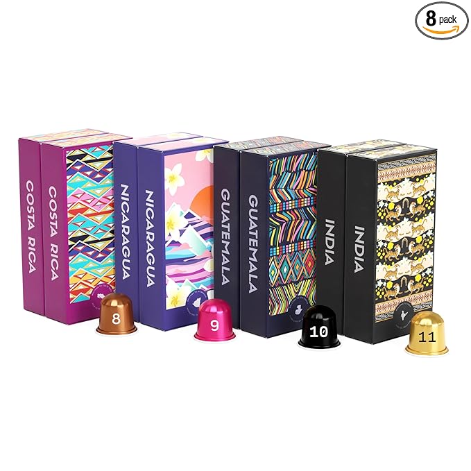Atlas Coffee Club Espresso Pods Compatible with Nespresso Original– Dark Roast Variety Pack (80 Count)– Aluminum Capsules from Costa Rica, Nicaragua, Guatemala & India– Intensity 8-11