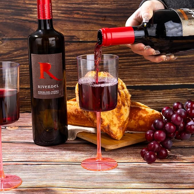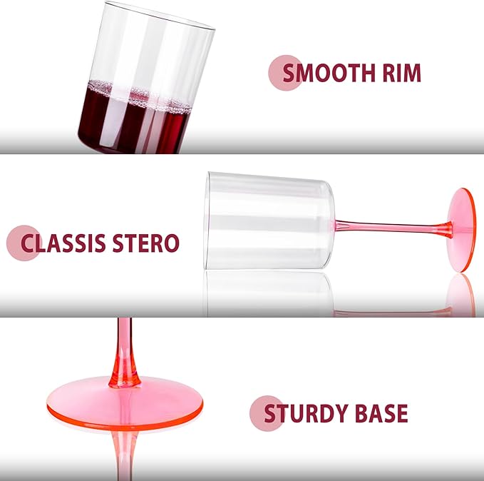 - STYLISH PINK STEM: The pink stem adds a pop of color, making these plastic vintage wine glasses a unique and eye-catching addition to your tableware collection. Whether you're hosting a wedding reception, outdoor BBQ, or poolside gathering, these glasses will stand out.