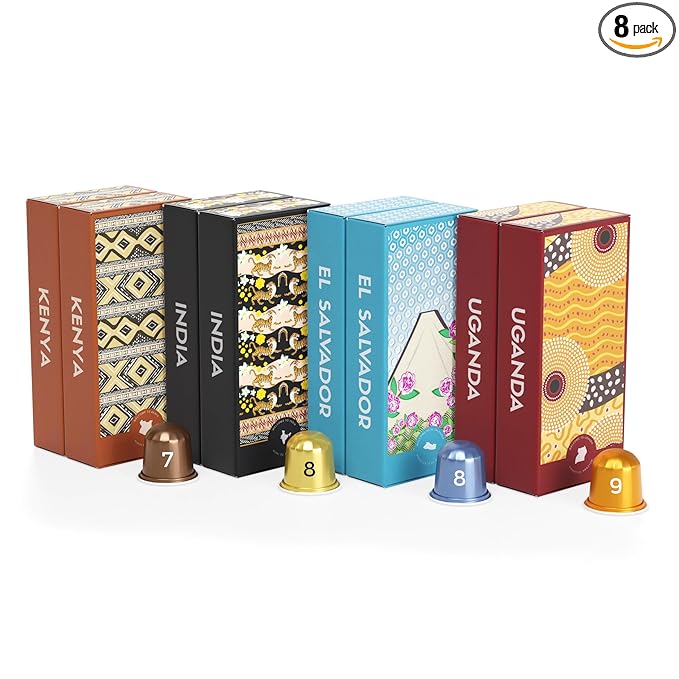 - FLAVOR FOR REAL: Explore Kenya (grapefruit + orange liqueur), India (dark chocolate + prune), El Salvador (red grape + cinnamon) and Uganda's (golden raisin + almond) vibrant tasting notes. Freshly roasted and ready to deliver a flavorful and rich shot of espresso. This premium, single-origin coffee is 100% Arabica.