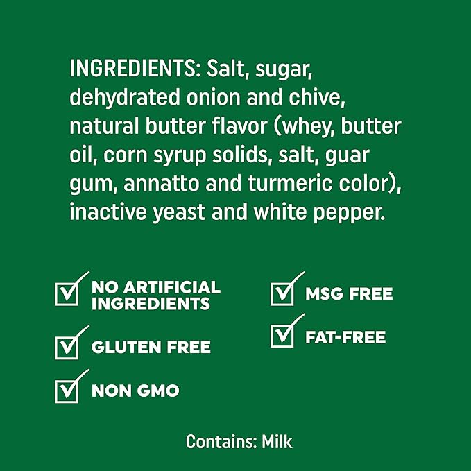 - ONION BUTTER FLAVOR: Onion Butter is a delicious all-purpose spice blend of onions (minced chives and toasted onions, shallots and scallions), mingled with natural butter flavor, green herbs, and a touch of white pepper.