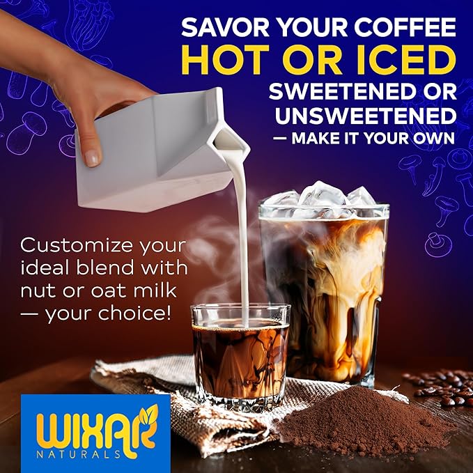 - THE WIXAR NATURALS COMMITMENT: Align your wellness journey with Wixar Naturals, a brand committed to your well-being. Our unyielding dedication to uncompromised quality extends to your daily coffee experience, delivering an all natural coffee that is both delectable and nourishing. Engage in a mushroom coffee ritual that not only gratifies your taste buds but also wholeheartedly supports your health goals.