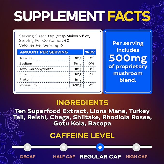 - PREMIUM QUALITY, MADE IN THE USA: Carefully made in the USA, our mushroom coffee is gluten-free, vegan, and non-GMO. Each batch is third-party lab verified to ensure purity and potency, delivering a premium quality coffee to enhance your daily wellness routine.