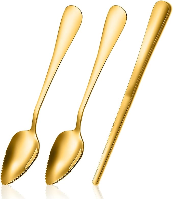 - 【 MIRROR POLISH PROCESS 】The grapefruit spoon is lengthened, widened and deepened,Both our grapefruit spoons and the grapefruit knife are all serrated edged and have been carefully polished by mirror finish treatment,never scrath your hands.