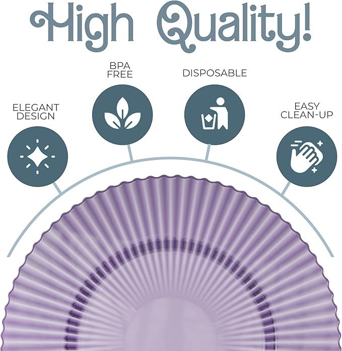 - Health & Safety: Our plastic disposable fancy plastic plates are not only convenient and time-saving, but also safe for use. They are 100% BPA-free. They are also made with non-toxic materials, ensuring that no harmful chemicals will leach into your food. Plus, they are food safe, so you can use them with confidence knowing that they will not affect the taste or quality of your food.