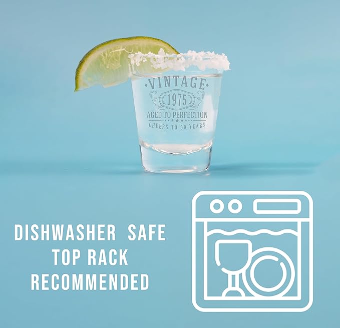 - Etched design is high quality and dishwasher safe, making these easy to care for. This engraved shot glass with the vintage design is a gift that will make any birthday more special.
