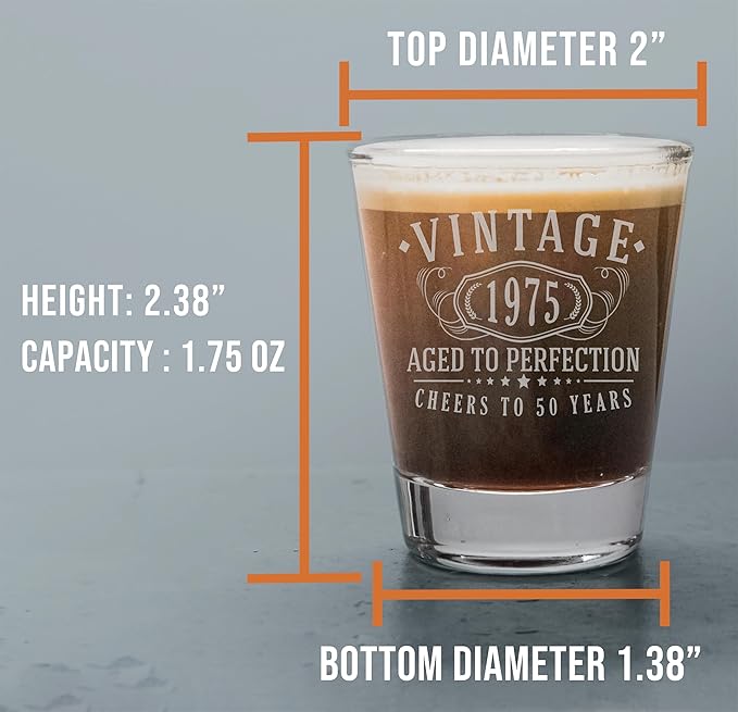 Vintage 1975 Etched 1.75oz 1pk Shot Glass - Happy 50th Birthday Gifts Women Men, Cheers to 50 Years, Turning 50 Year Old Woman Decorations Decor, Anniversary Bday Party Favors, Best Gift Ideas 1.0