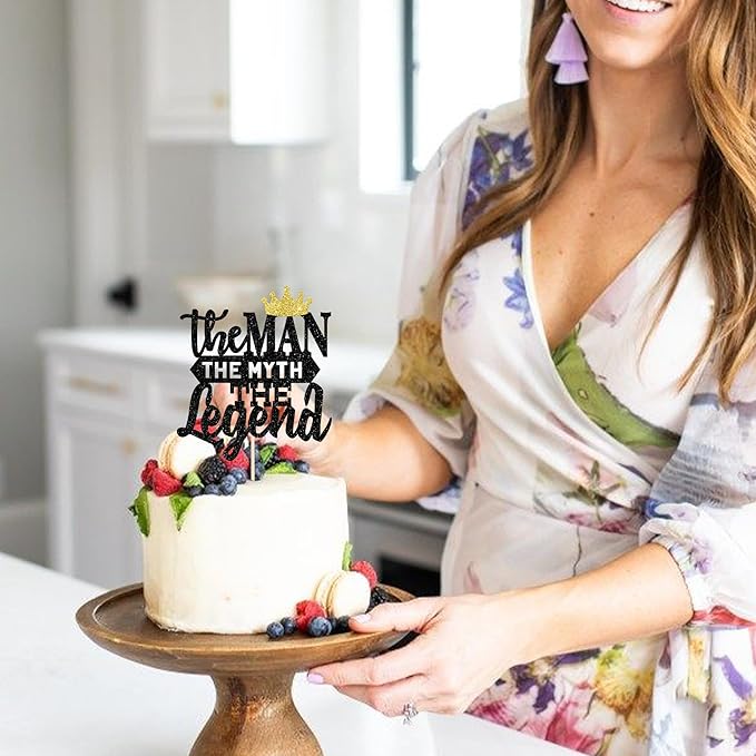 - Package and Size: Includes 1 pcs the man the myth the legend cake topper. 1 pcs / card.
