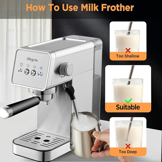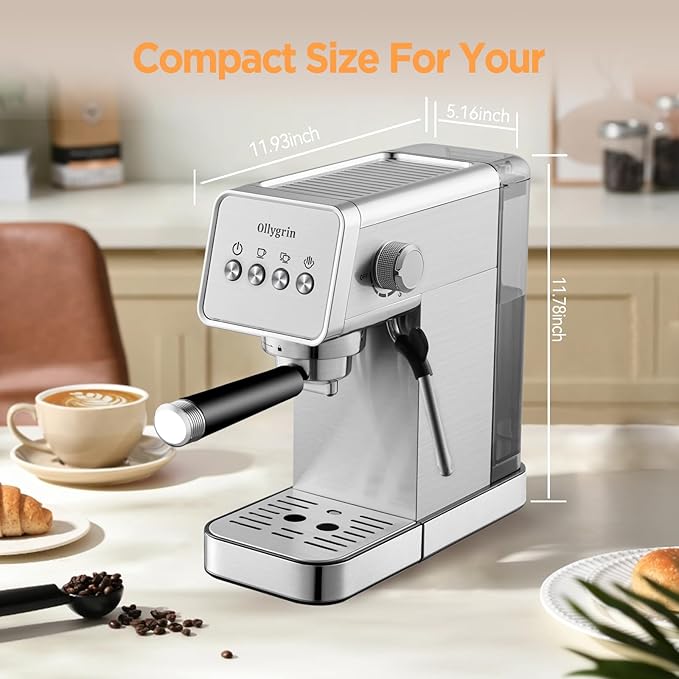 - Professional Espresso Machines for Home Use: Ollygrin espresso machine featuring a 20-bar pressure system and powerful 1350W motor allows you enjoy the rich aroma and unique taste of barista-quality espresso