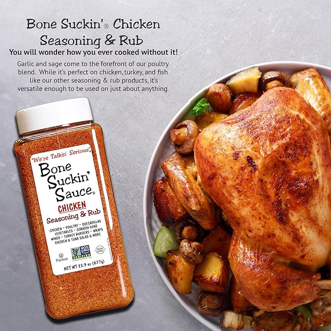 Bone Suckin' Sauce Bulk Seasoning & Rub - Brown Sugar, Garlic, Onion, Spices - Non-GMO, Gluten-Free, Fat-Free, Kosher, Pareve, No MSG (1 Pack, Chicken)