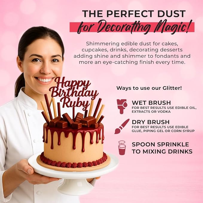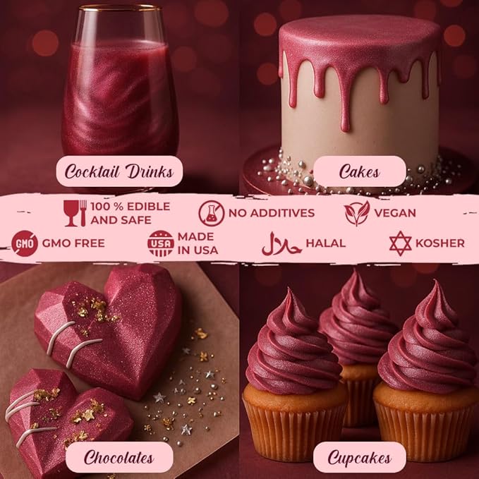 - ๐๐ข๐ข๐ ๐๐ฅ๐๐๐๐, ๐ฉ๐๐๐๐ก ๐๐ฅ๐๐๐ก๐๐๐ฌ & ๐ ๐๐๐ ๐๐ก ๐ง๐๐ ๐จ๐ฆ๐ Crafted with 100% safe food grade ingredients our luster dust is tasteless, vegan, gluten and dairy free, halal and is made locally in the US. Our edible red dust is safe for kids and everyone it also works great as cake drip, cake decor for red cake decorations for professional results without affecting its taste
