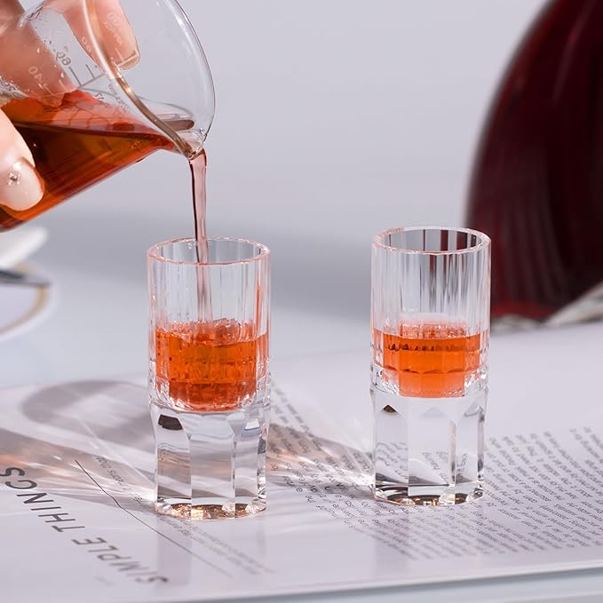 - Gorgeous Packaging, Ideal for Gifting: In a beautifully designed box, our crystal shot glass set looks refined. Whether you're rewarding yourself or pleasing spirits-loving friends, business partners, or family, this carefully assembled set will surely impress, being the perfect gift