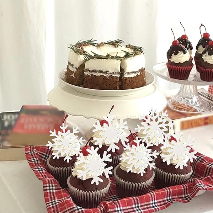 - Unique Design and Proper Size! Brace yourself for a ton of compliments.Your guests will love the unique snowflake design on the cake and cupcake, these edible snowflake cupcake toppers can be used at different theme party decorations
