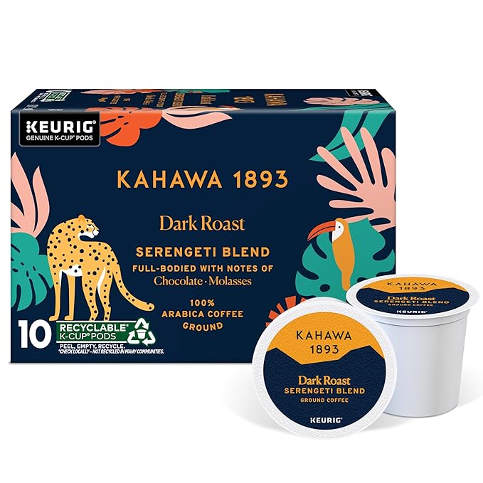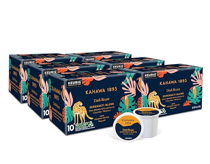 Kahawa 1893 Dark Roast Coffee K-Cup Pods Serengeti Blend (60 Count) - As Seen on Shark Tank, Low Acid, High Antioxidants, Naturally Sweet, Organically Grown, Ethically & Sustainably Sourced