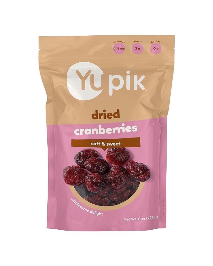 Yupik Dried Cranberries, 8 Oz, Gluten-Free, Kosher, Dried Fruits, Whole Cranberries, Lightly Sweetened, Healthy Snacks