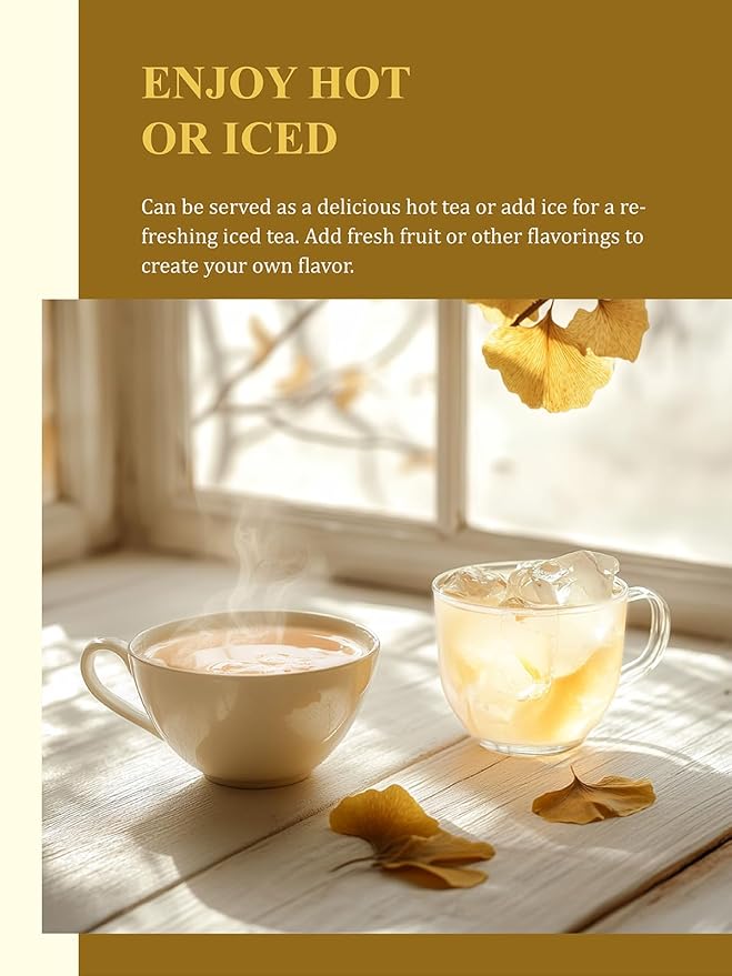 - [HOT OR ICED BREWING] - Ginkgo Biloba tea can be enjoyed hot or iced. To make iced tea, let it cool, add ice cubes and refrigerate it. You can enjoy Ginkgo Biloba tea on its own, you can add a bit of honey or stevia to sweeten it. Adding ginger, lemon, or mint to enhance the flavor and add a refreshing taste.