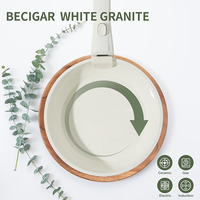 8pcs Ceramic Pots and Pans Set, Non Stick Cookware Set, Detachable Handle Cookware, Induction Kitchen Cooking Set with Removable Handle,Oven Safe, Induction Fast, Stackable Cookware Set
