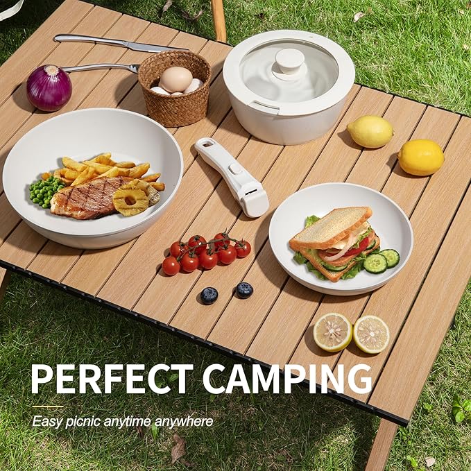 - 3. Storage Easy to Clean: Pots and pans set with detachable handles allow for compact nesting, optimizing 75% kitchen cabinet space and providing a healthy cooking environment,it’s easy storage for cabinets or RVs