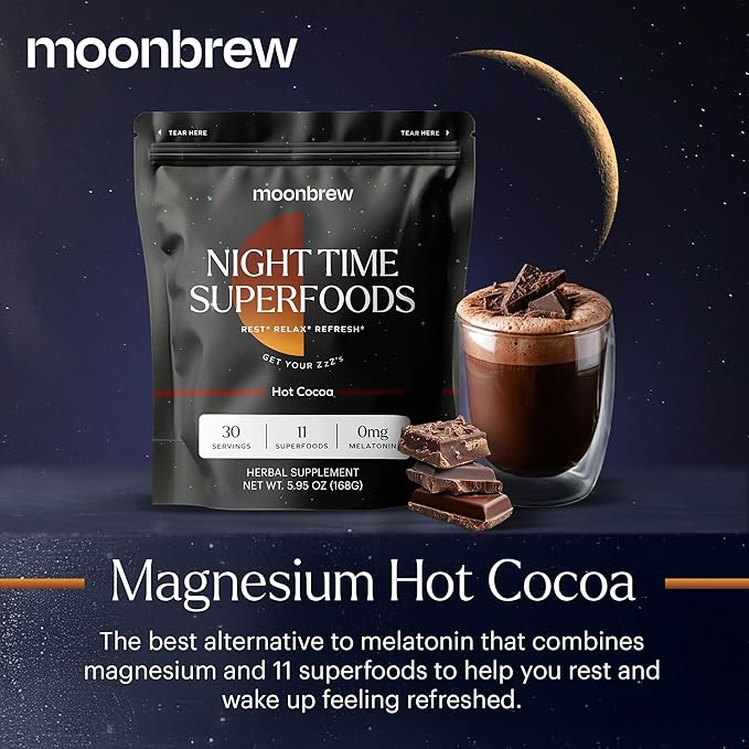 - Your New Nighttime Ritual: Unwind with MoonBrew Magnesium Hot Cocoa, a healthy, rich, velvety supplement blend designed to support deep relaxation and rest so you can fall asleep, stay asleep, and wake up feeling refreshed. 30 servings.