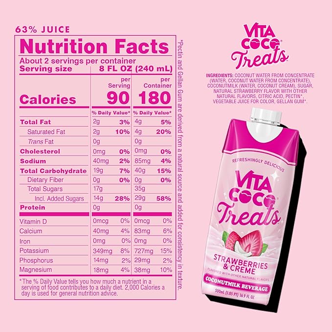 - REFRESHING, SWEET AND PINK | Vita Coco Treats combines the sweet taste of strawberries and cream with the tropical richness of coconut milk.