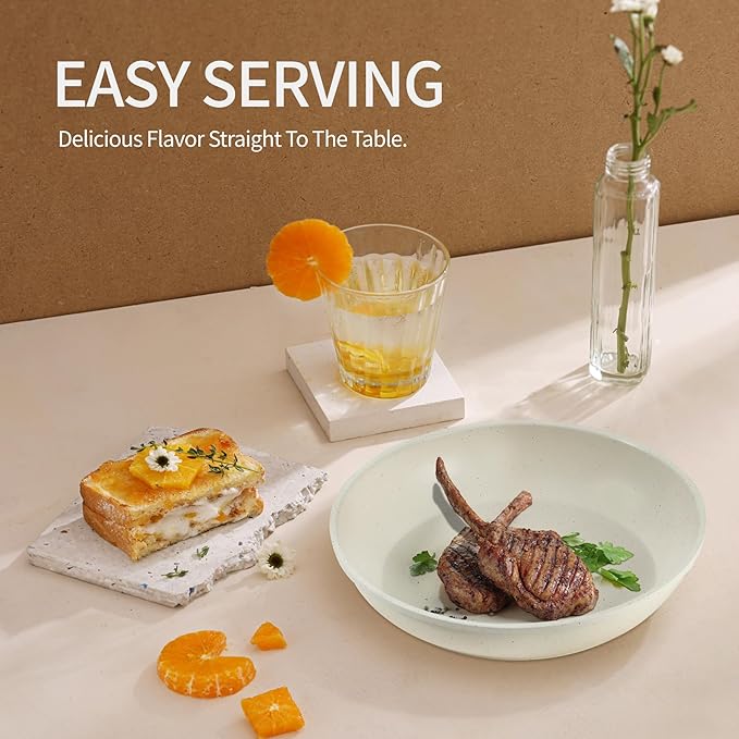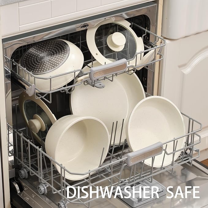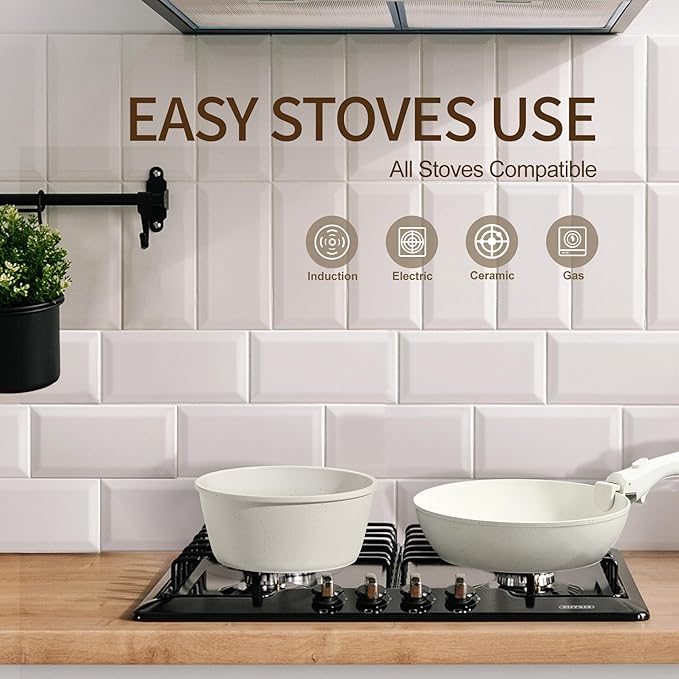 - 3. Easy Cleaning & Wide Compatibility: Nonstick ceramic cookware set Just a cloth and rinse it with water, less water wasted.recommend hand wash,ceramic frying pan set it is really easy to clean. ceramic nonstick cookware set with extended bottom design. Our nonstick cookware ceramic pans can work on all cooktops, non stick ceramic frying pan can use for induction cooktops.