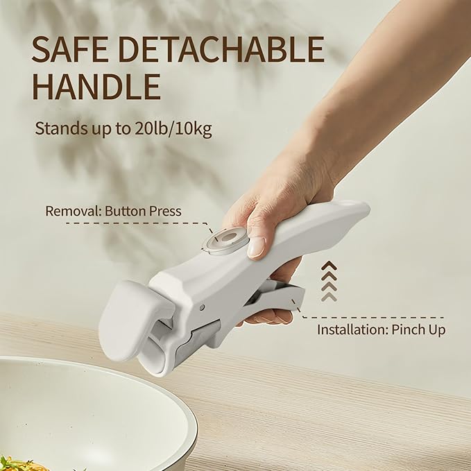 - 2.Pots and pans set non stick secure removable handle: Ceramic cookware set non toxic Handle Support up to 22 pounds, the ceramic cookware set handle is heavy duty tested, ceramic pots and pans fit for removable handle set pots and pans, our non stick ceramic pots and pan set no need to worry about wobbly handles.