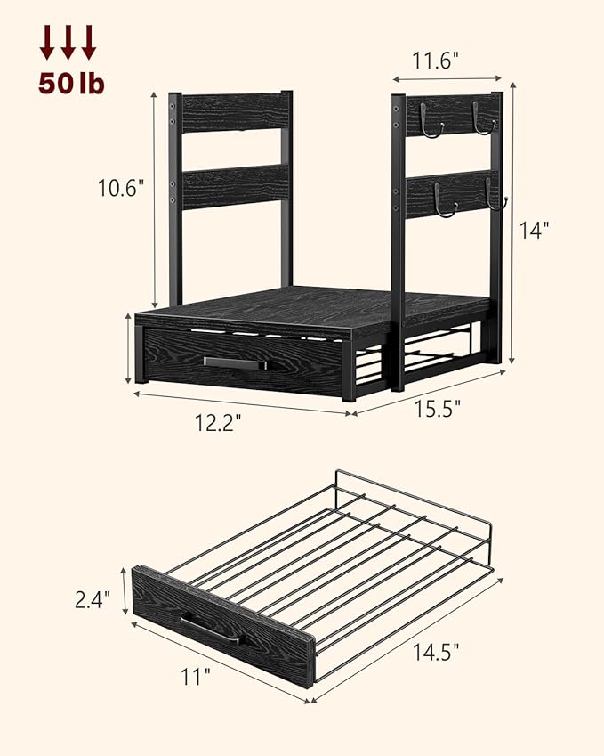 Coffee Pod Drawer for K Cup, 35 Pods K-Cup Holder Organizer with Cup Holder, Durable Coffee Maker Stand with Storage Drawer, Black