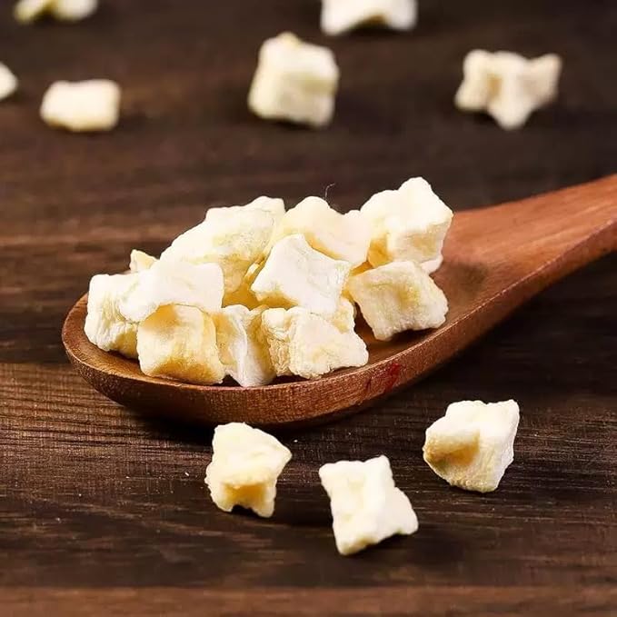 - Dried diced apples are delicious and crisp, making them a great snack. They can also be added to ice cream, cereal, yogurt, salads, cakes, etc., to increase the flavor of food