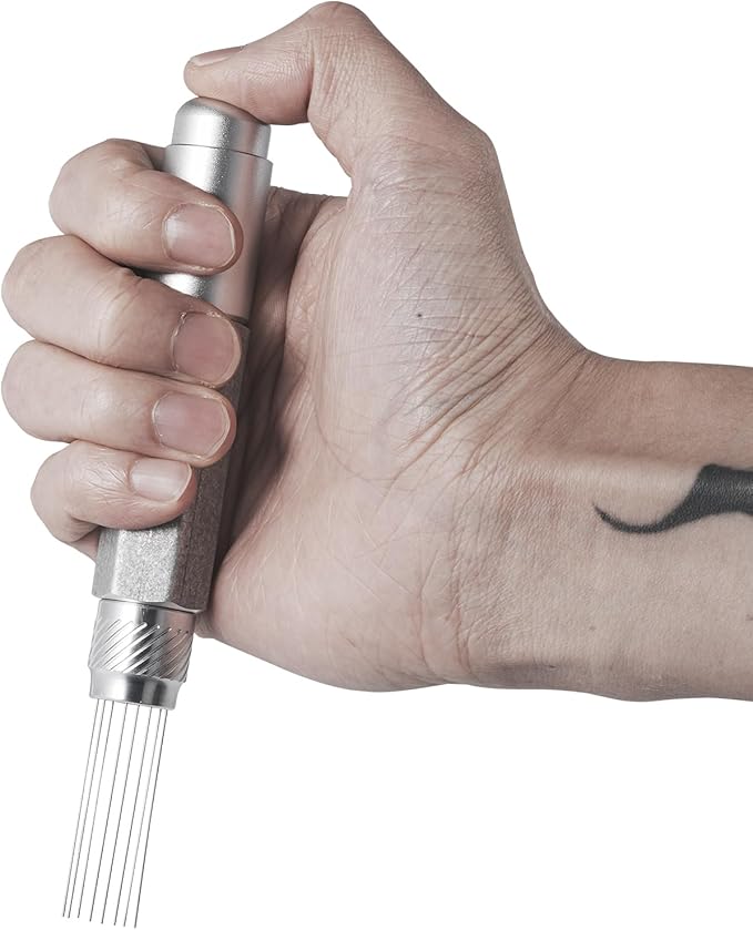 - 【Enhanced Extraction Quality】Using the espresso needle distributor before tamping will elevate your coffee's extraction quality. With 8 finely crafted 0.4mm pins, this tool expertly breaks up clumps, ensuring even coffee powder dispersion.