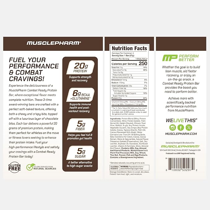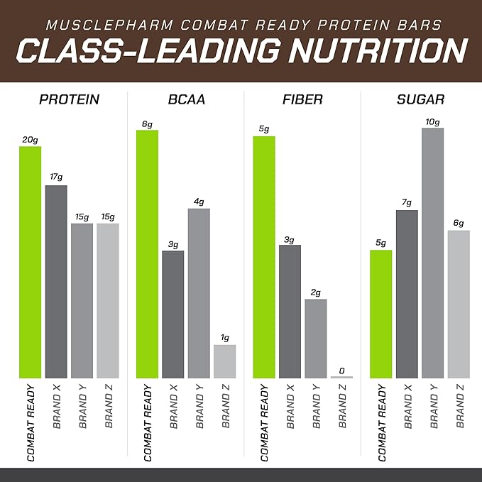 - Fuel Performance & Combat Cravings: Indulge with an award-winning MusclePharm Combat Sport Bar and its combination of superior taste and balanced nutrition. Packed with 20 grams of premium protein to fuel the energy demands of a high-performance lifestyle, meet protein needs and combat cravings.