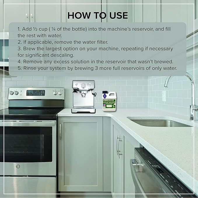 Breville Espresso Machine Compatible Descaler - 1 YEAR SUPPLY - Concentrated Descaler for Breville - 16 oz Coffee Maker Cleaner for Breville, Nespresso, Delonghi, Espresso Machine - 4 Uses