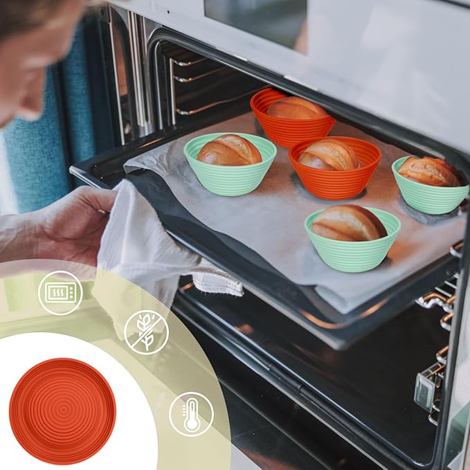 - Elevate Your Baking: Our premium silicone bread proofing baskets outshine traditional rattan ones. The sourdough starter kit is made from top-grade, BPA-free silicone, our bread baskets handle temperatures from -20°F to 440°F (-30°C to 226.15°C), ideal for fridge proofing and direct oven use. Safe, durable, and versatile—transform your baking experience today