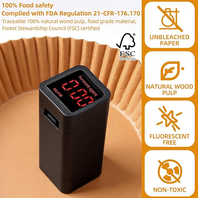 - Safe and Degradable Material - HONYAO baking paper is made of 100% food grade pulp, is non-toxic, bpa free and hygienic, it is waterproof, oil-proof, non-sticky, 100% healthy and heat resistant. Each piece of disposable air fryer paper undergoes a rigorous disinfection process to achieve 100% food safety. The material of disposable paper is degradable and environmentally friendly.