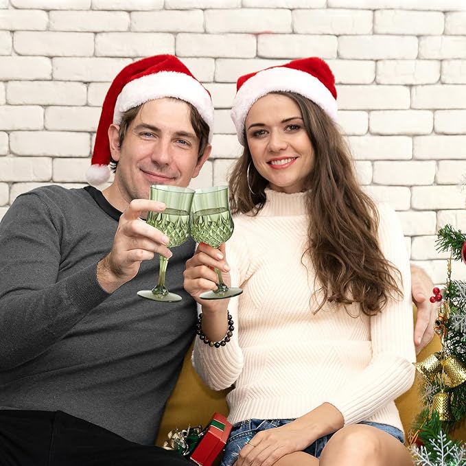 XUWAIDSGN 48 Pcs 7oz Plastic Vintage Wine Glasses Drinking Glasses Unbreakable Wedding Glassware Crystal Water Goblets Reusable Drinkware Vintage Champagne Flutes (48, Dark Green)