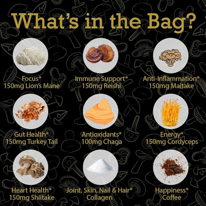 - Awaken Your Senses: Delight in the rich, comforting aroma and taste of our Original mushroom coffee. Let the exquisite flavors of this coffee alternative transport you to a place of pure indulgence and satisfaction.