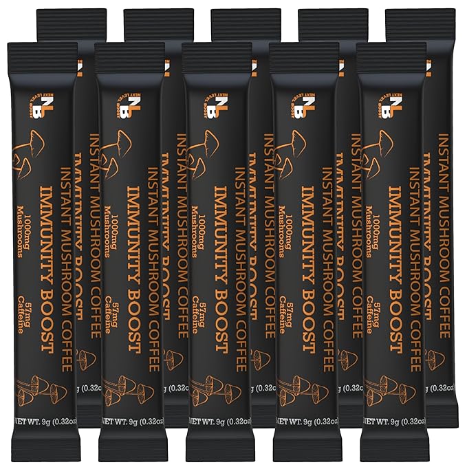 Immunity Boost Organic mushroom Instant Coffee - 10 x 9g Packets - Healthy Coffee alternative and Substitute - With Chaga, Collagen, Lions Mane and Antioxidant
