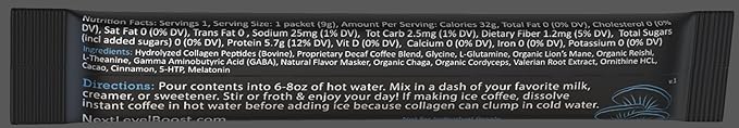Sleep Boost Organic mushroom Instant Coffee - 10 x 9g Packets - Healthy Coffee alternative and Substitute - With Collagen, Lions Mane and Antioxidant