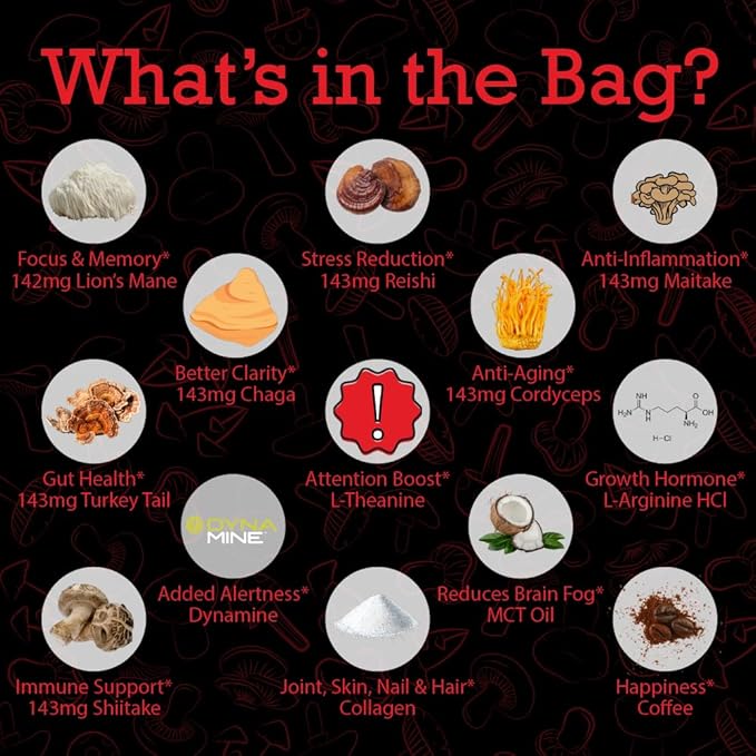 - Embrace the power of pure, potent ingredients: Each sip of this mushroom coffee instant is a symphony of health-boosting elements, from the adaptogenic wonders of Lion's Mane and Chaga to the clarifying touch of L-Theanine, all derived from real mushrooms.
