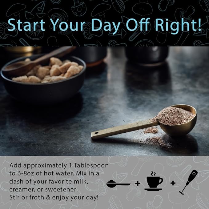 - Indulge in Self-Care: Treat yourself to a moment of pure indulgence with our rich, comforting blend of organic instant coffee and organic mushroom powder. This instant coffee powder offers a guilt-free pleasure that nourishes your body and soul.