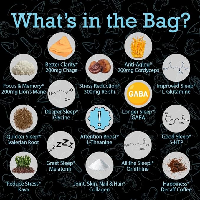 - Escape to Tranquility: Immerse yourself in the soothing embrace of our Instant Mushroom Coffee - Sleep Boost with Kava. This decaf instant coffee is specially crafted to melt away stress and lull you into a peaceful slumber. Made with organic decaf coffee and organic mushrooms, it's the perfect coffee alternative for a restful evening.
