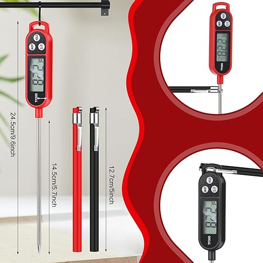 - Size Information: the kitchen thermometer is about 9.65 x 0.98 inches/ 24.5 x 2.5 cm, and the protective sleeve is about 5 inches/ 12.7 cm, proper size for you to use, suitable for preventing undercooked meat and foodborne illnesses, therefore enhancing food safety in your home