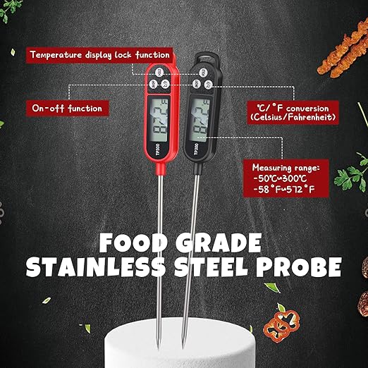 - Instant and Accurate Reading: the thermometer for food is designed for ease of use, suitable for measuring temperatures for cooking, or other applications, these thermometers offer simplicity and practicality
